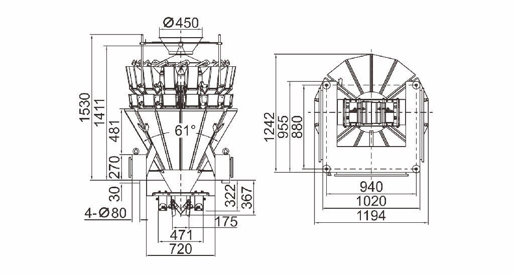 4. 60 ° شلال التفريغ الحاد يضمن تفريغ المنتجات بسلاسة.