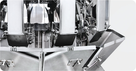 الميزان الخطي المعياري ذو 10 رؤوس مناسب لوزن لفة الشرائح أو المنتجات ذات الشكل العادي مثل السكر والملح والبذور والأرز والسمسم والغلوتامات ومسحوق الحليب والقهوة ومسحوق الموسم إلخ.