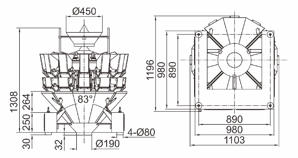 2. Оснащенный специально разработанным центральным конусом, вращающийся верхний конус может равномерно распределять продукты в каждый лоток линейного питателя. Оснащен программным обеспечением как для взвешивания, так и для подсчета.