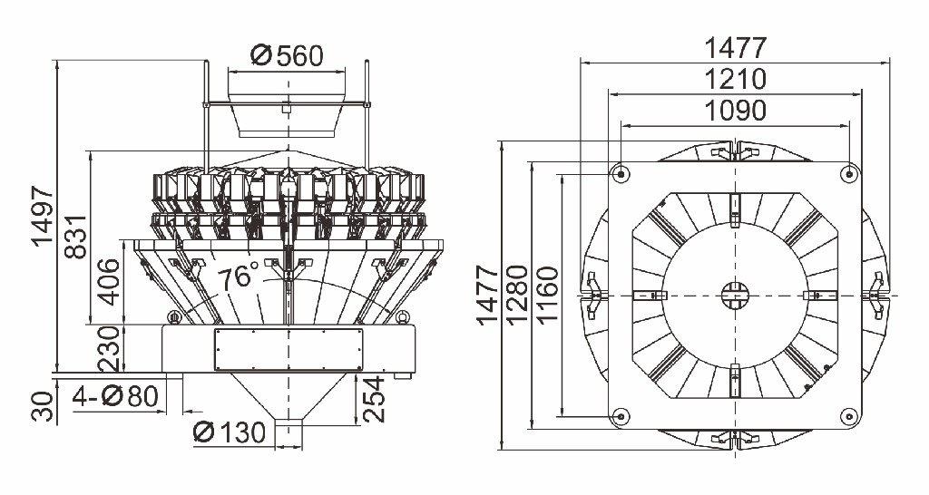 1. Универсальный бункерный весовой модуль повышает взаимозаменяемость частей всей машины.