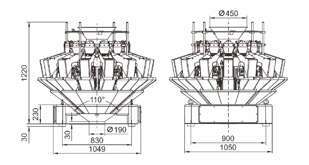 3. La tolva de pesaje inclinada internamente acorta la altura de caída por adelantado.