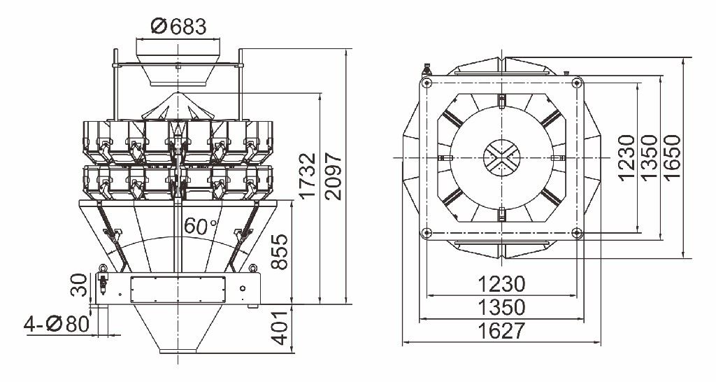 1. El cono superior giratorio de velocidad ajustable es adecuado para la alimentación de diferentes productos.