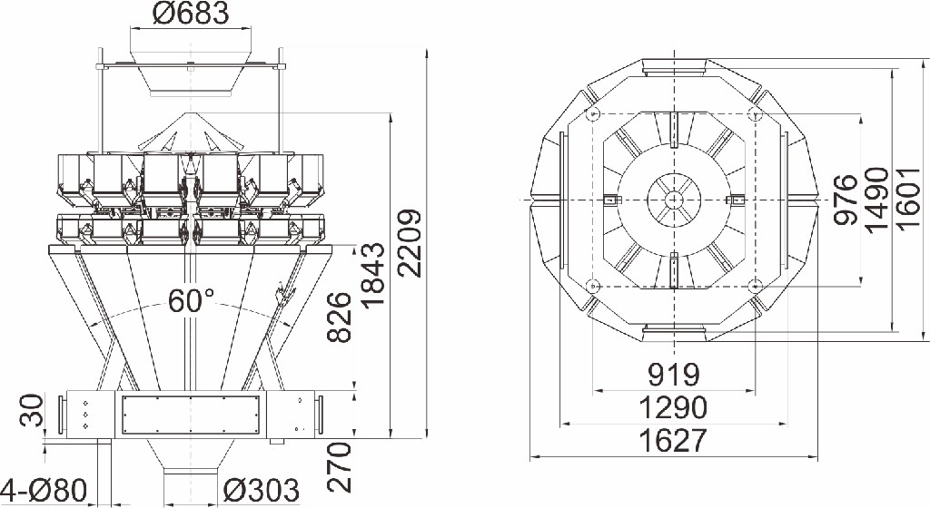 1. El cono superior giratorio de velocidad ajustable es adecuado para la alimentación de diferentes productos.
